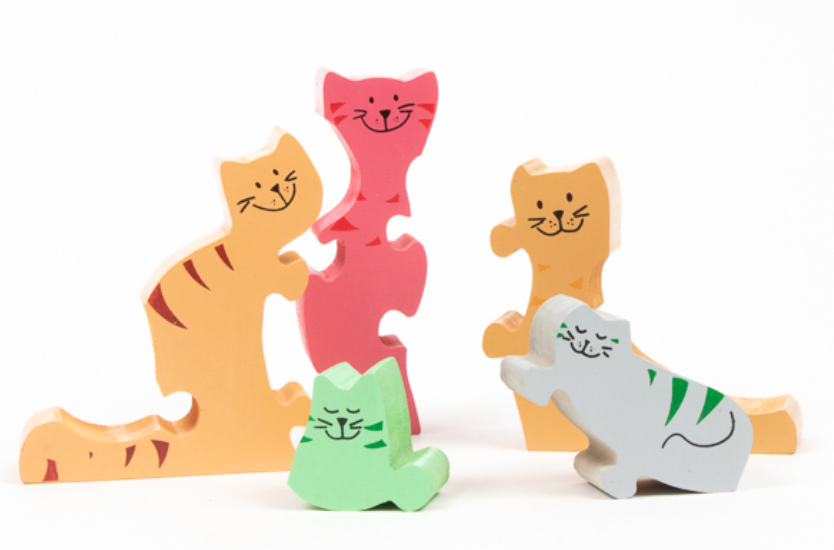 This cute family cat puzzle is made up of five smiling cats, this is the one for that cat mad youngster. It is handmade from sustainable albesia wood and painted with non-toxic paint.