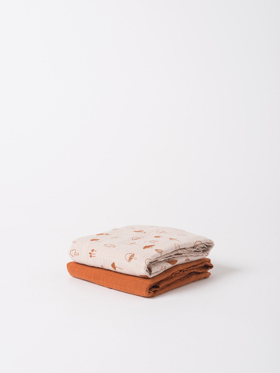 Organic Cotton Muslin Wrap 2 pack Mushroom by Citta Design