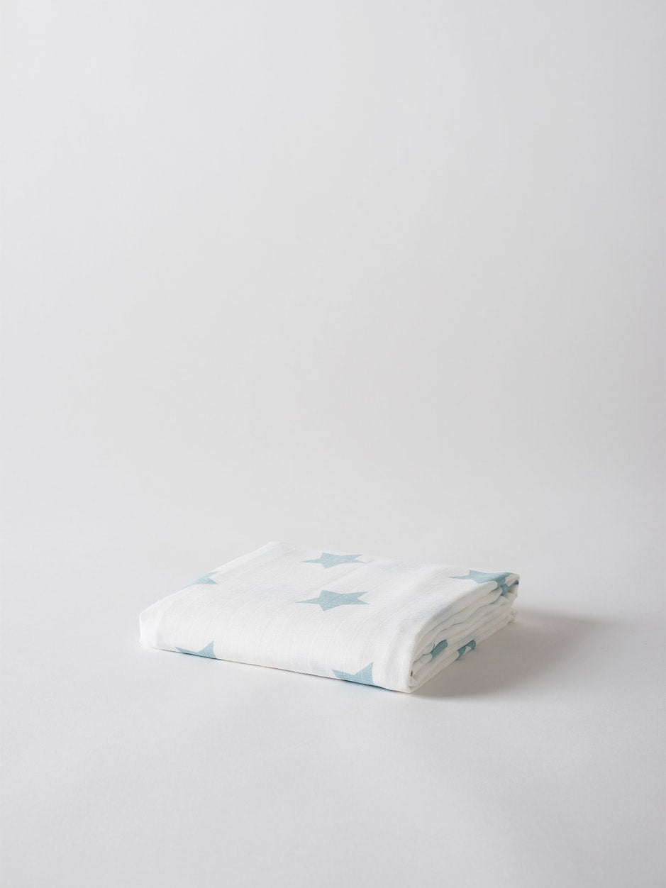 This lightweight Organic Cotton Muslin Wrap in a cute tea star print is a generous, slightly stretchy layer for baby.