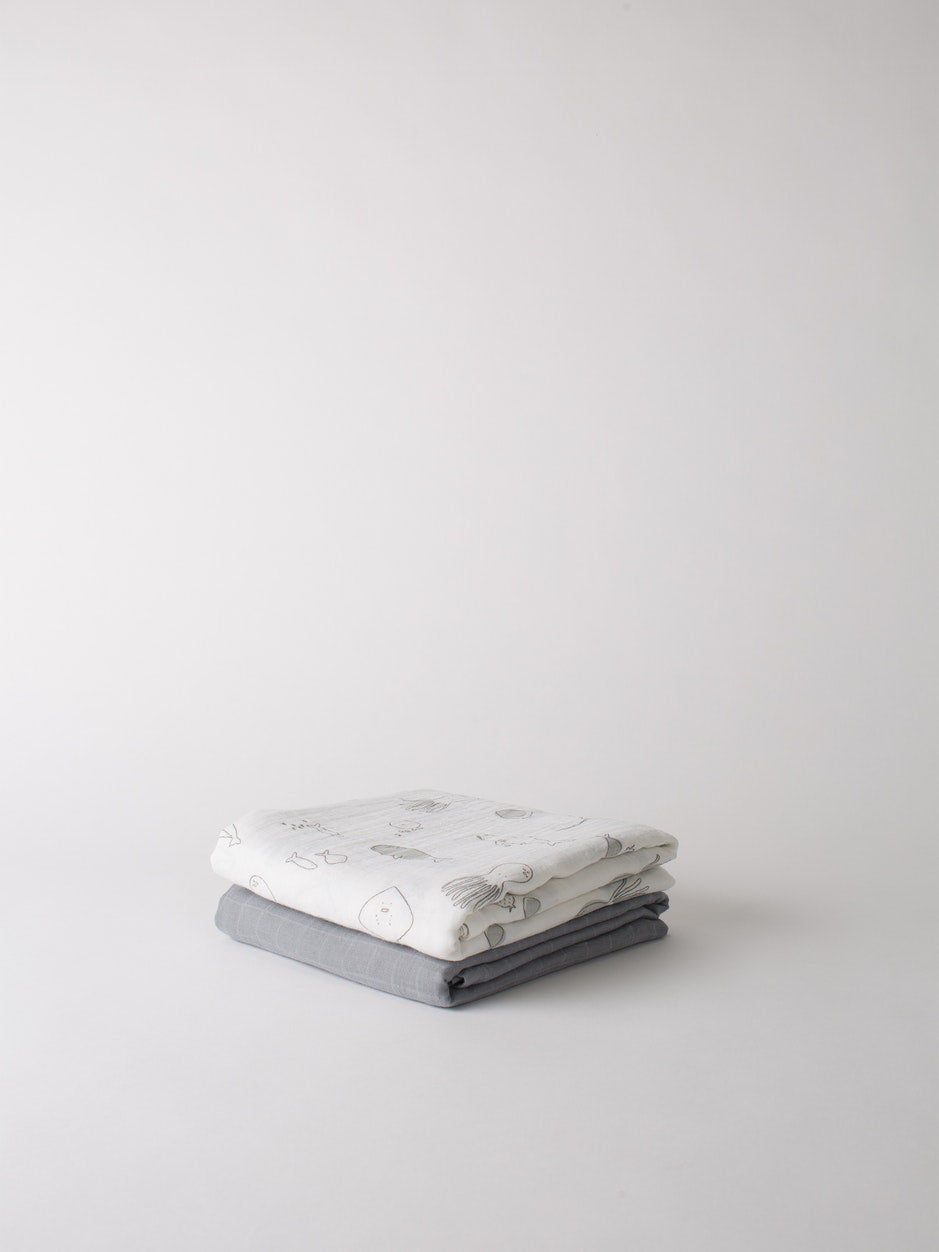 Organic Cotton Muslin Wrap 2 pack Sea Creatures by Citta Design